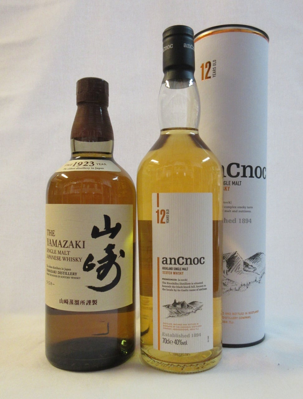 「サントリーシングルモルト山崎」と「スコッチシングルモルト アンノック12年」の飲み比べセットです。