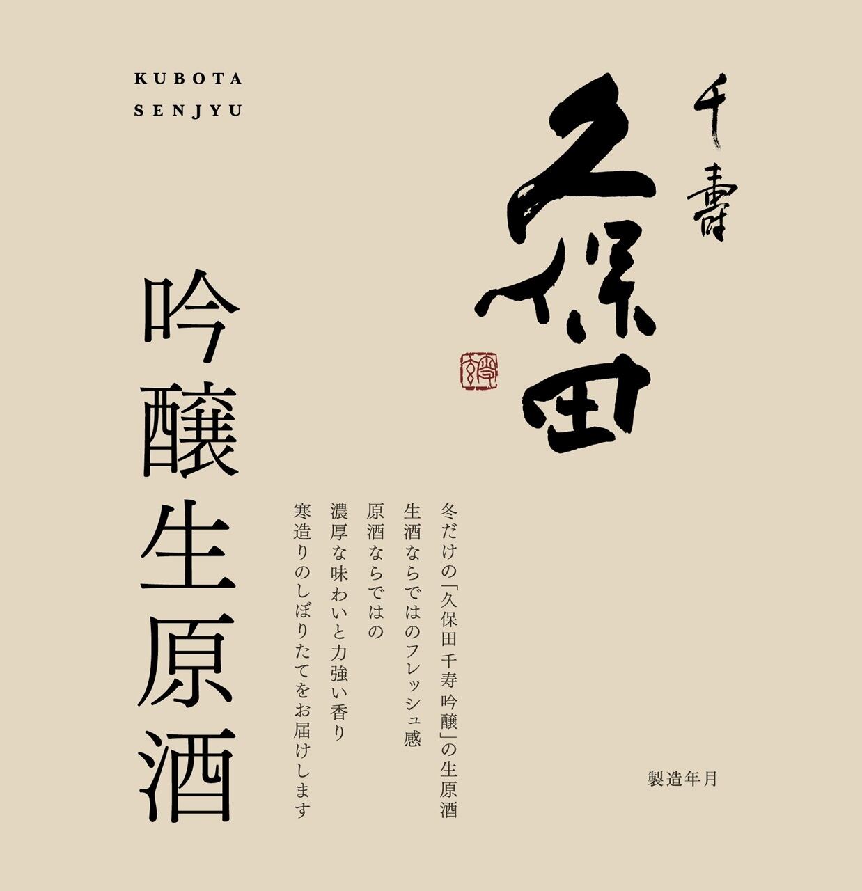 寒造りで造られた、冬限定の「久保田 千寿」の吟醸生原酒。搾りたてのフレッシュな口当たりと、千寿本来の飲みやすさとキレはそのままに原酒ならではの濃厚な味わい、そして、力強い香りが特長のお酒です。